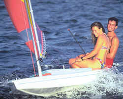 However, the Klepper needs some work (it's over 30 years old and has been in the Pacific, Atlantic, Gulf of Mexico and a variety of lakes and rivers in between the coasts) and so it's been more a few months since I was on the water. We decided to go to a local park and rent a little Sunfish. In it's proper sailing form, the Sailfish looks like this: